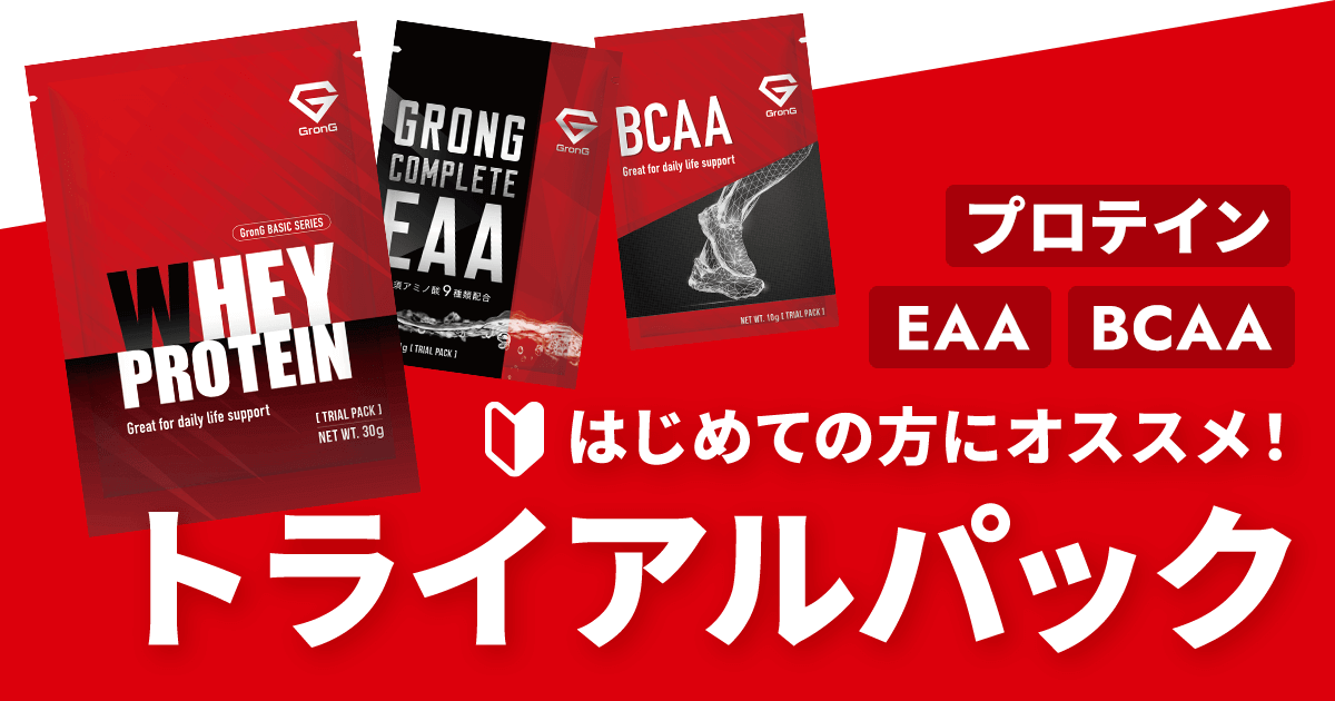 ※「ホエイプロテイン100ベーシック トライアルパック(全種セット)」「BCAA トライアルパック(全種セット)」「COMPLETE EAA トライアルパック(全種セット)」が対象です